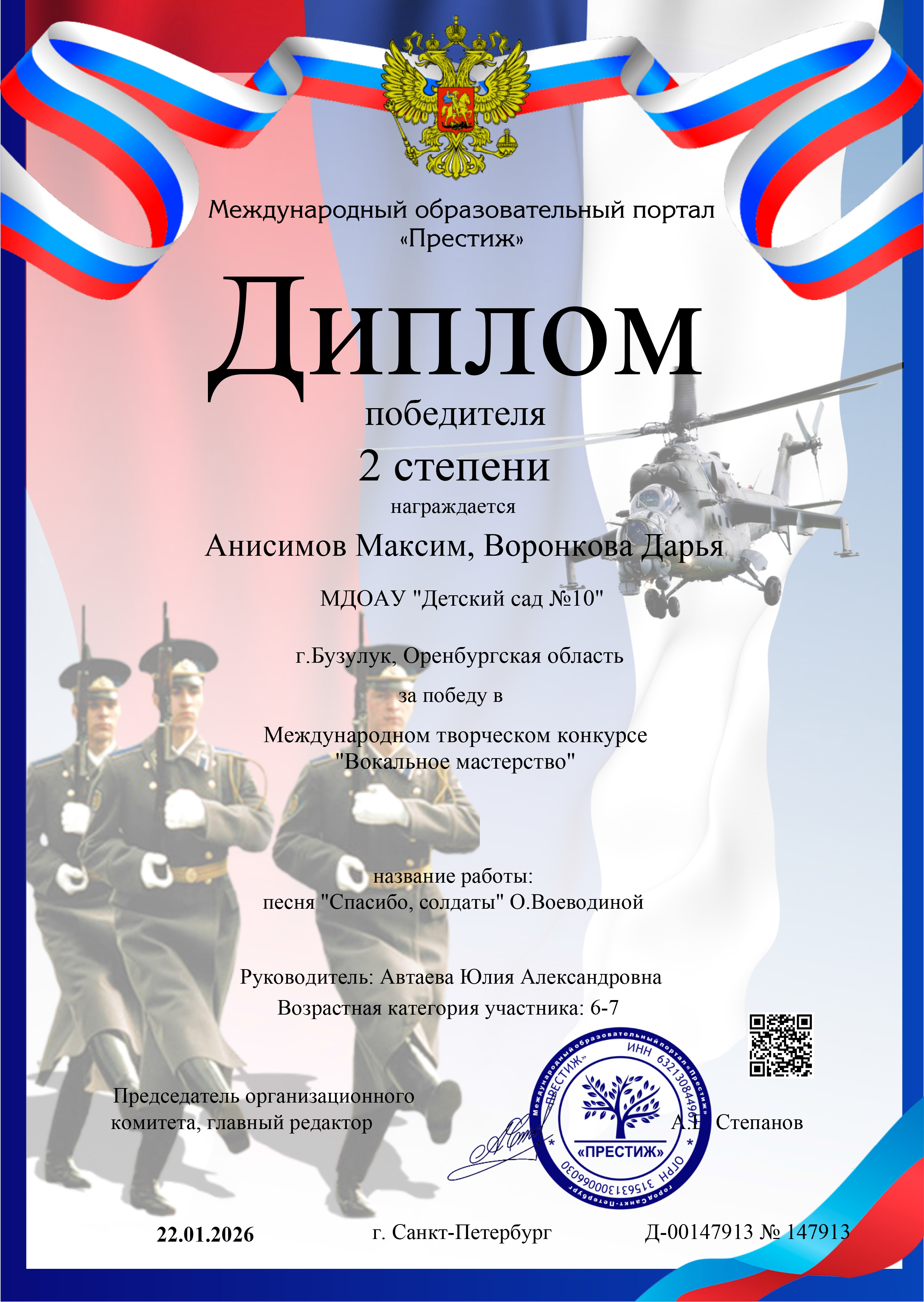 Наша воспитанница Сергеева София приняла участие в городском конкурсе "Мисс Очаровашка - 2025" и получила диплом в номинации "Мисс Модница"и заняла 2 место. В конкурсе София рассказала о себе и продемонстрировала свои таланты в вокальном и танцевальном искусстве, а также прочитала стихотворение, посвящённое маме. Выражаем огромную благодарность Семье Софии и музыкальному руководителю МДОАУ "Детский сад №10" Автаевой Ю.А. за помощь в подготовке к конкурсу. |