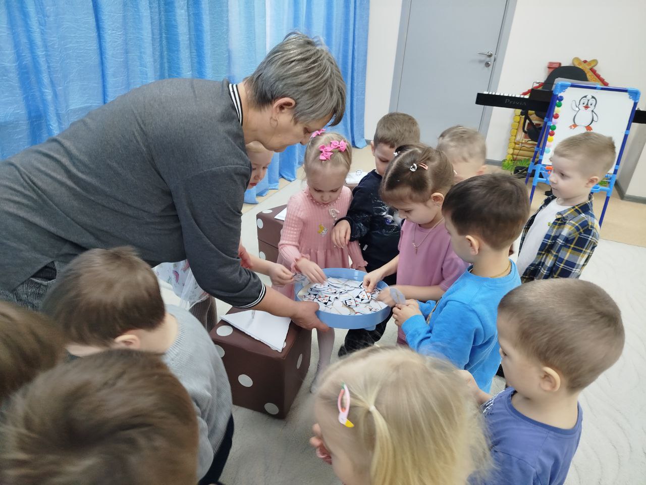 Целью занятия было показать молодым педагогам на практике, как через единый игровой сюжет можно развивать у детей разносторонние навыки. Чтобы помочь гостю, ребята построили для него наглядный «режим дня» с помощью музыки и математики. Пингвинёнок Пинни вернулся обратно в Антарктиду с целой папкой полезных советов и рисунков-подсказок от ребят. Занятие стало наглядным примером для начинающих воспитателей того, как эффективно реализовывать интегративный подход в образовании. Оно продемонстрировало, что математическая логика и музыкальная гармония прекрасно дополняют друг друга, делая процесс познания для дошкольников по-настоящему увлекательным и целостным.