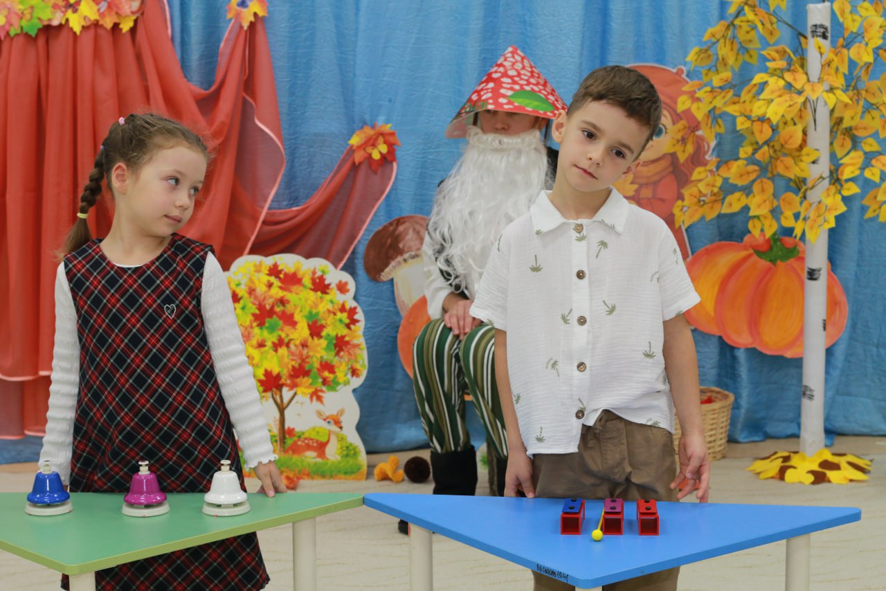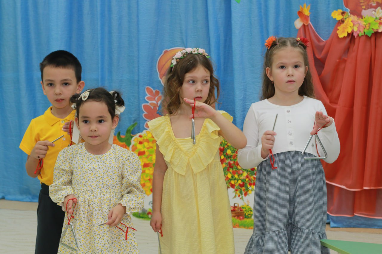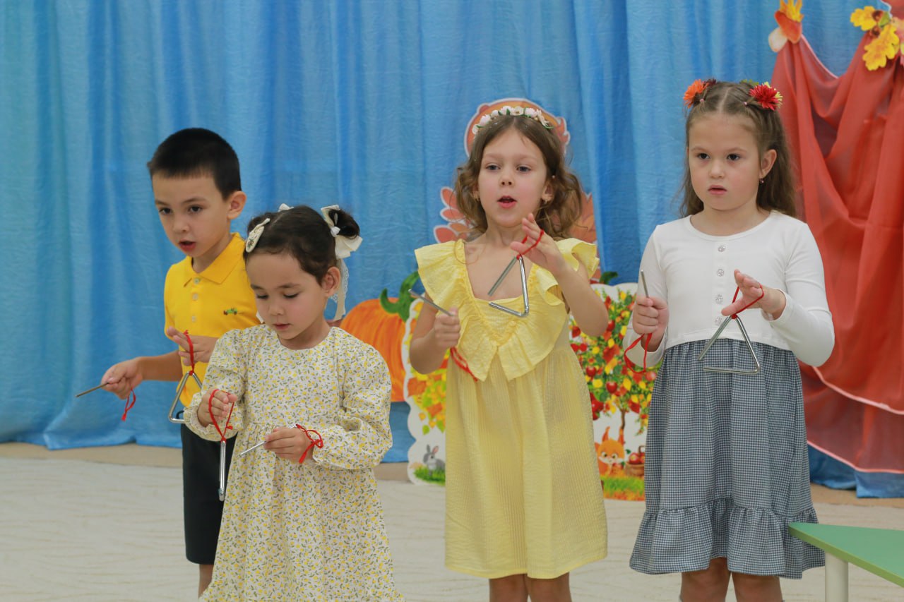 Оркестр "Грустный дождик" О. Воеводиной в исполнении воспитанников старшей группы.